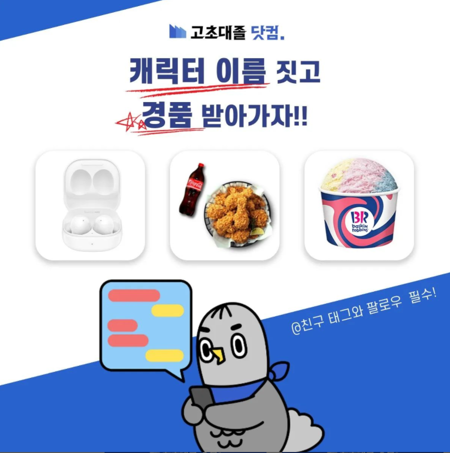 고초대졸닷컴의 캐릭터 이름을 지어주세요