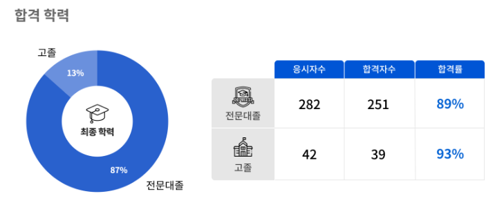 전문대졸이 상당히 우세함을 알 수 있다.