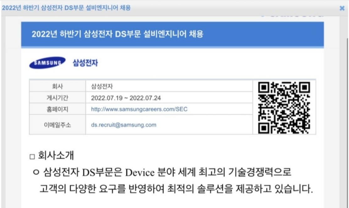2022년 다시 한번의 채용을 예고했던 것처럼 삼성전자 5급의 채용이 올라왔다.