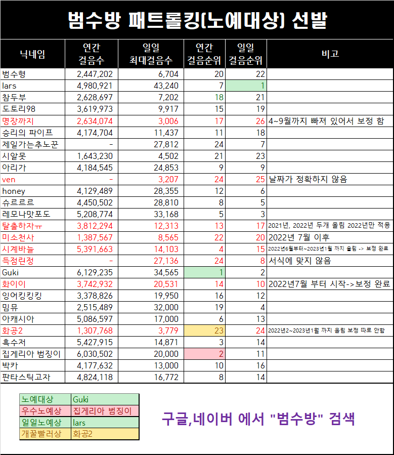 노예대상 : guki (연간 6,129,235보 / 일일평균 16,792보)