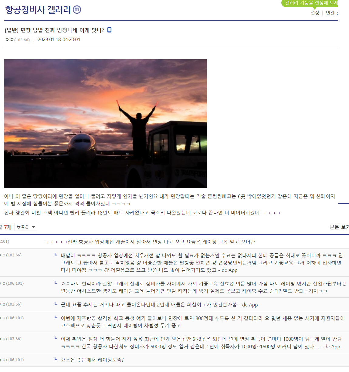 사실상 디씨 항공정비사갤은 좌절에 가까운 글을