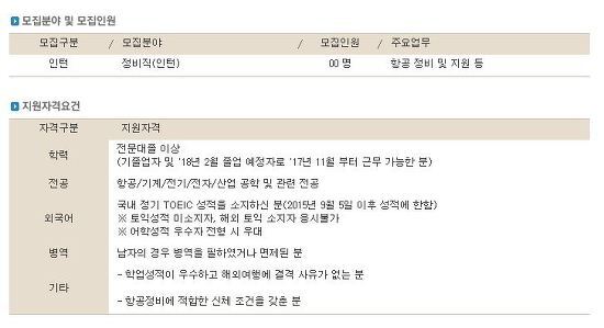 대한항공 정비 인턴과