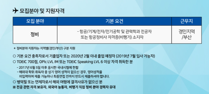 대한항공은 고졸부터 되나, 과를 보면 전졸이상 가능할 것으로 보인다.