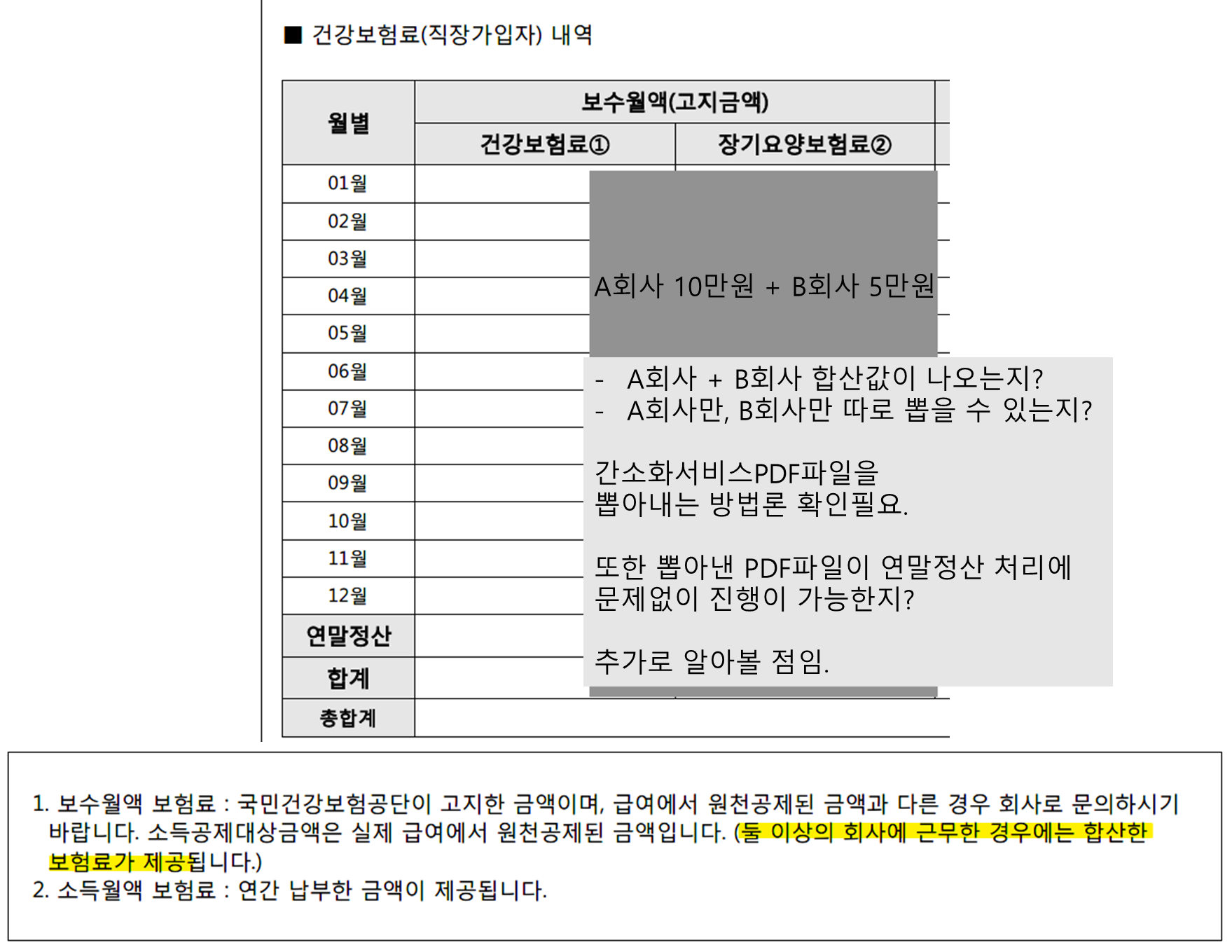 결론 1-2 : 건보료 연말정산 시 회사별 구분이 가능한지 추가 확인 필요