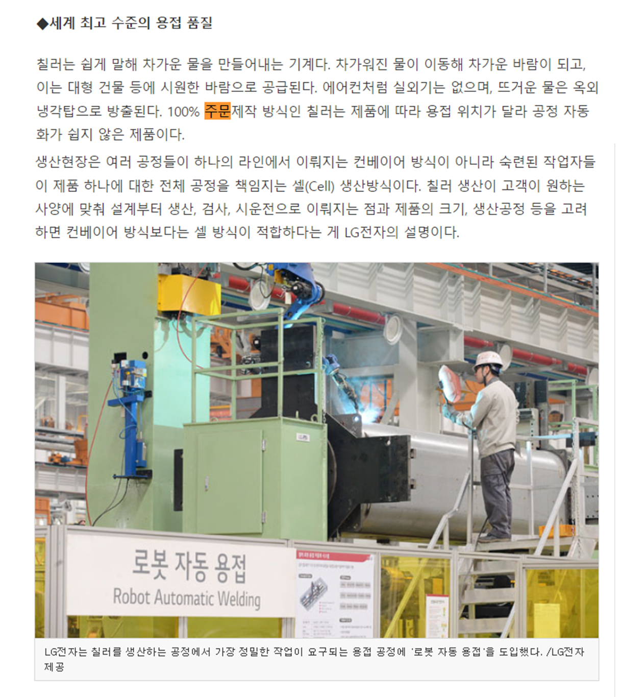 반면 산업용 칠러를 생산하는 LG전자의 평택공장은 사뭇 분위기가 다르다.
