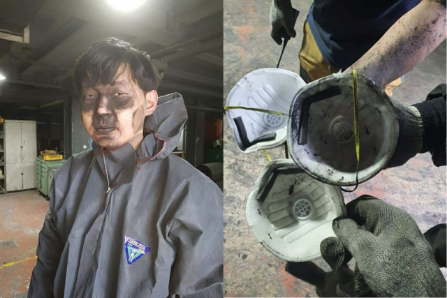 마스크 + 방진복에도 몸안으로 분진이 침입하는것을 막을 수는 없었다.