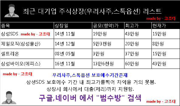 익히 알려진 대기업 상장사례는 아래와 같다.