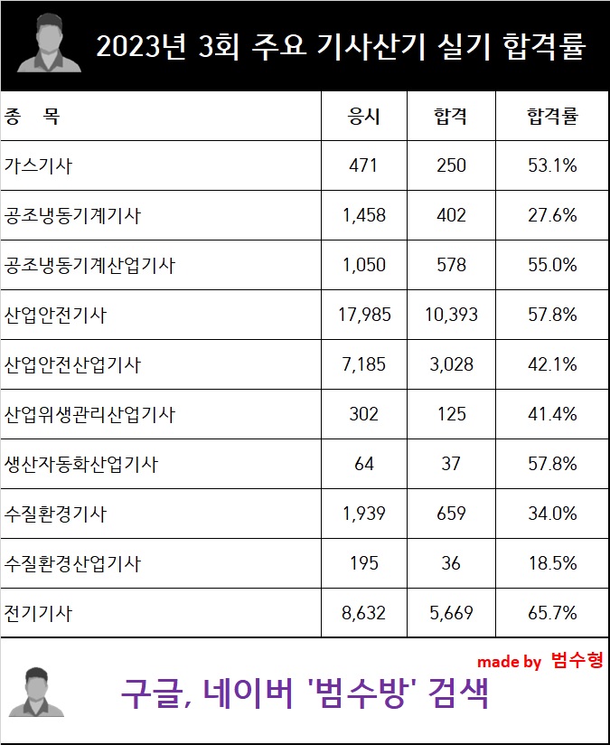 23년도 3회차 주요 자격증의 합격률 발표가 되었다.