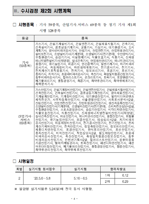 앞서 공지한 데로 기사시험 및 산업기사 시험은