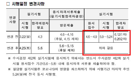 하지만, 당초 예상과 달리 실기시험 1회는 예정데로 진행된다고 한다.