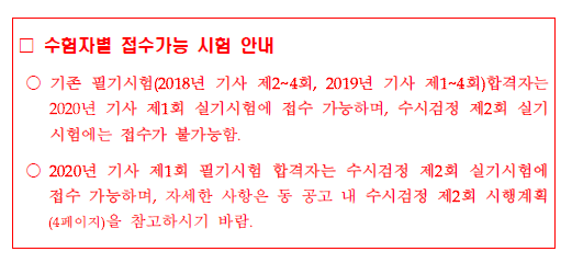 | 2020년 기사 1회 필기시험 세부일정 및 시험장 변경 관련 공지 (0) | 2020.03.31 |