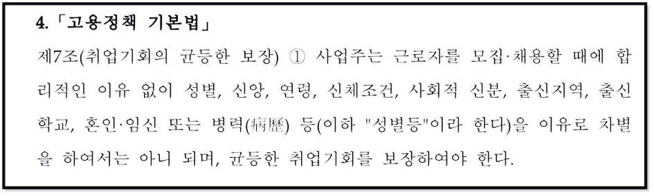 말 그대로 "고용 차별 금지" 조항에 저촉되지만,