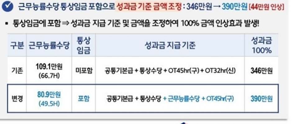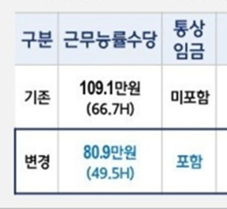 결국 절충안을 받아들이면서, 비통상수당의 핵심인 근무능률 수당 자체가 109.1만 -> 80.9만으로 약 28만원 가량 줄게 되었다.