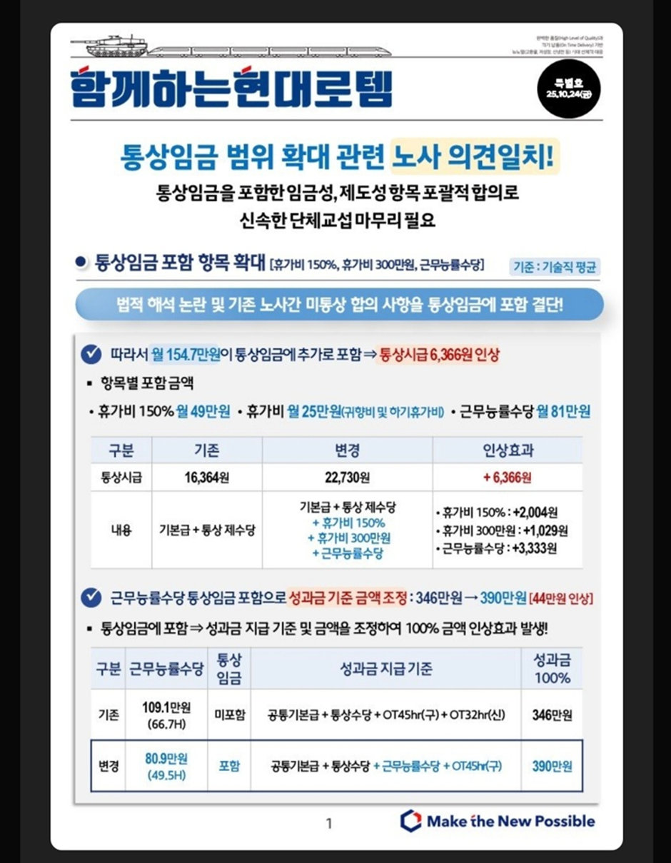 25년 10월 24일 드디어 현대로템의 통상임금 협의가 되었고, 그 결과가 도출되었다고 한다.