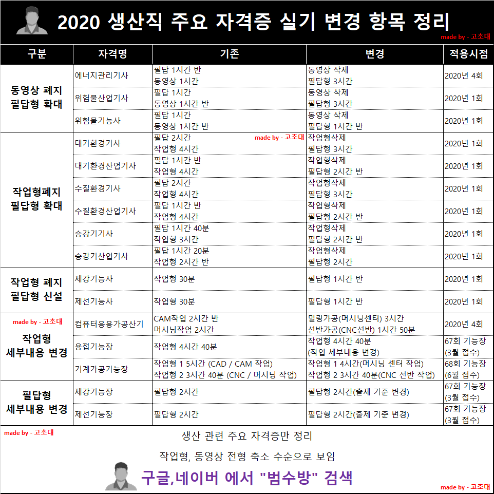 2020년 기사 산업기사 실기 과목이나 전형이 변경되는 종목이 있다.