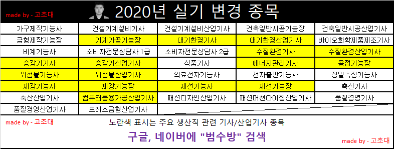 2020/03/24 - [스펙 관련/자격증 관련] - 큐넷 기사시험 실기 1회 및 수시검정 2회 시행계획 발표 (오피셜)