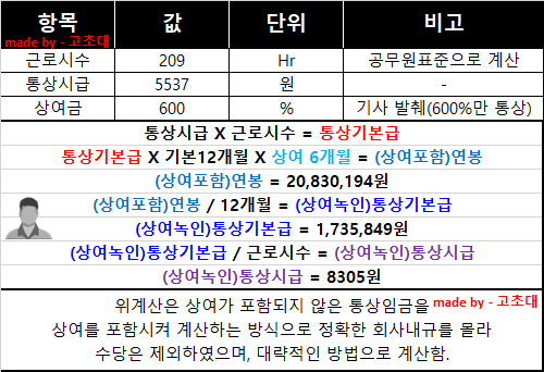 → (상여녹인)통상시급은 '계산상' 8305원이다.