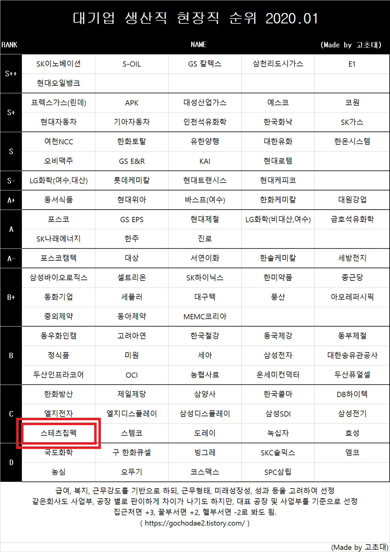 일전 재미로보는 기업순위로 C 순위로 스테츠칩팩코리아를 순위로 주었다.