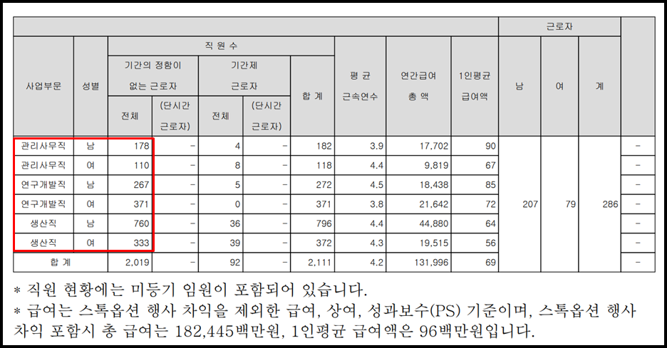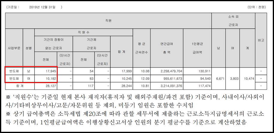 기업 정보공시를 통하여 남/여 사원수를 확인해보자.