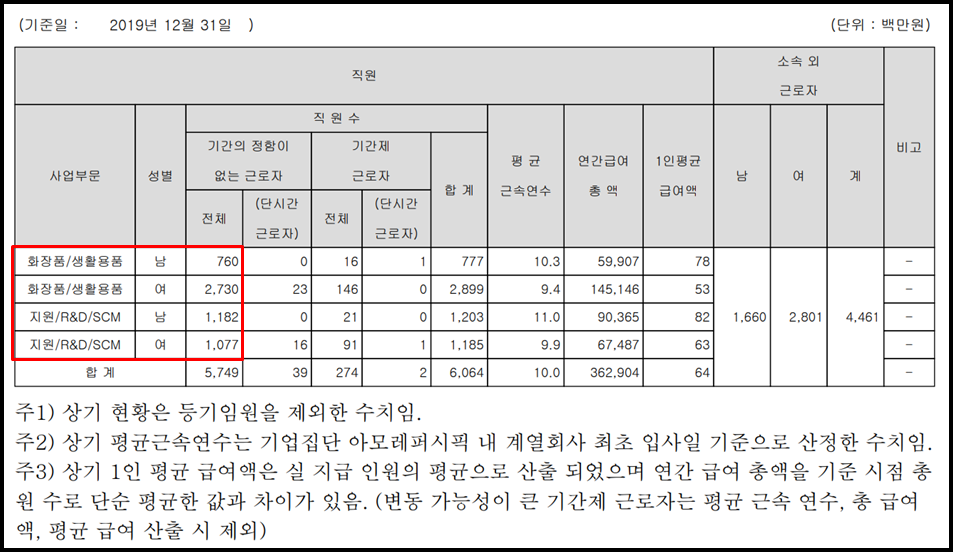 아모레퍼시픽도 생산직이 따로 나위어있지 않다.
