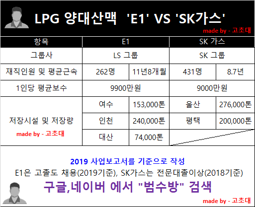 LPG업계의 양대산맥 E1과 SK가스를 비교해보자.