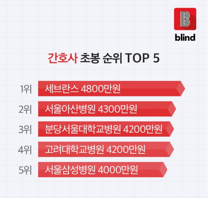 언론에 공개된 간호사 초봉 순위다.