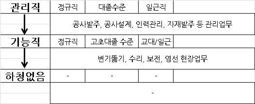 특이하게 설비직과 기능직이 분리되어있다.