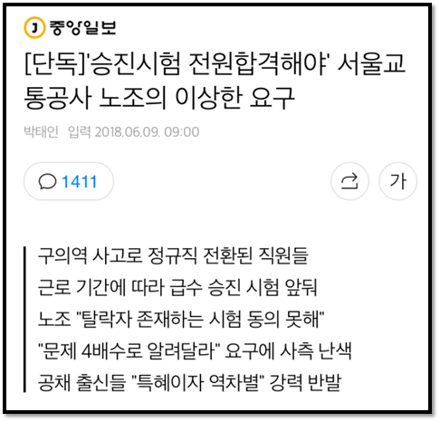 서울교통공사의 '하청 정규직 전환' 으로