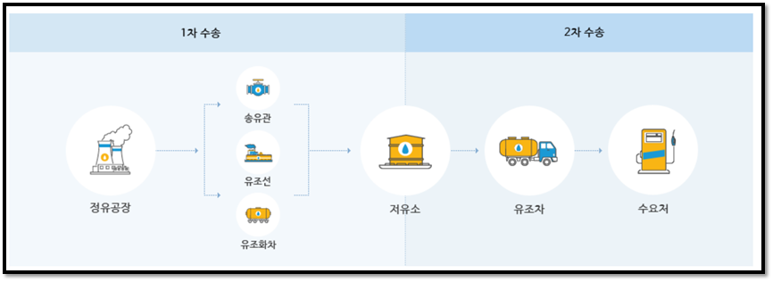 정유사 - 저유소 - 대리점 - 주유소 - 소비자