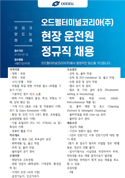 오드펠터미널코리아 공고이다.