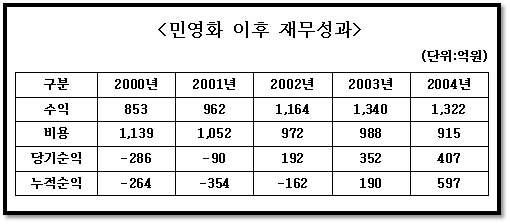 하지만 2001년 정부의 공기업 민영화 방침에 따라