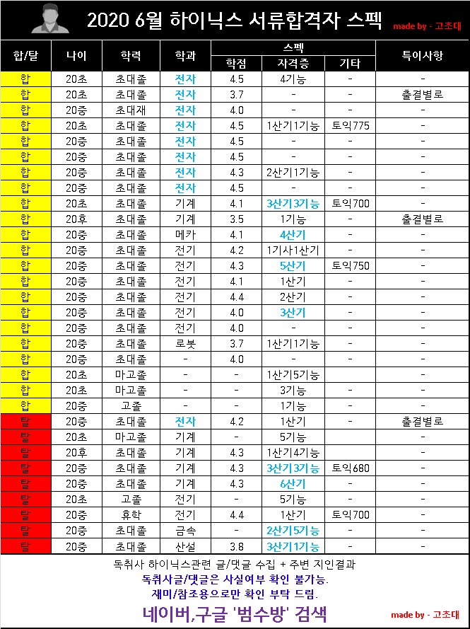 하이닉스 지원자들의 합불결과를