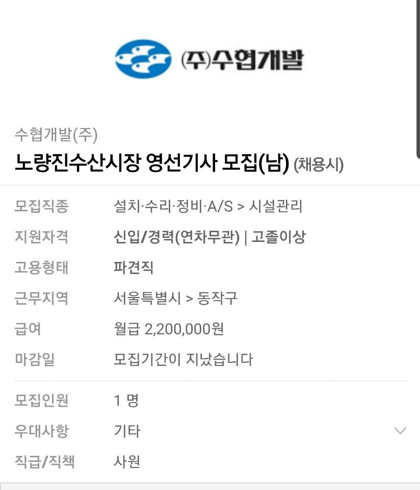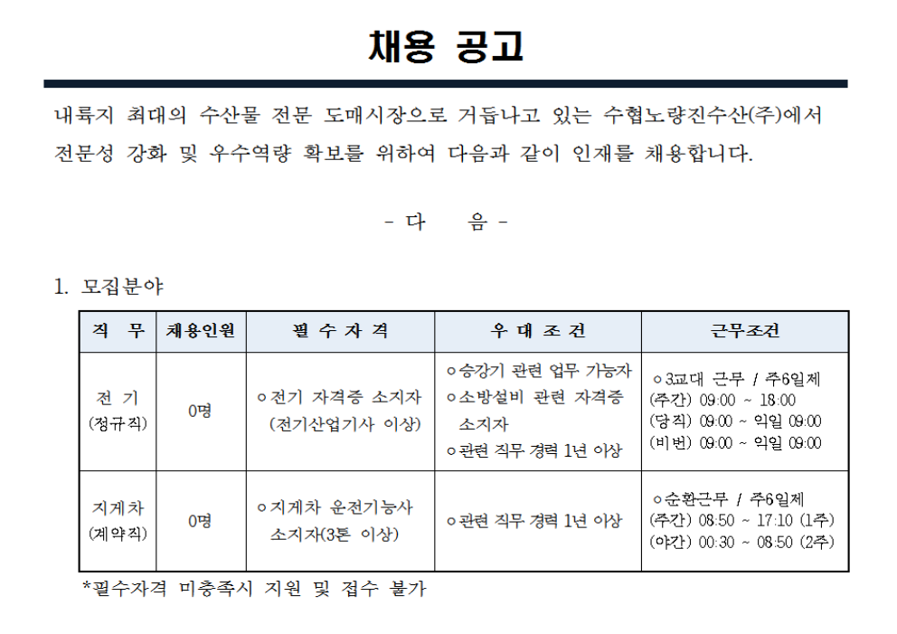더도말고 덜도말고 딱 시설직에 어울리는 요구스펙이었다.