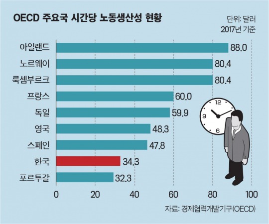 시간당 생산성은 평균에 한참 못미치는