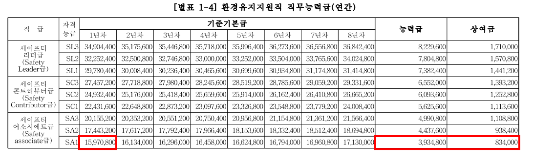 기준기본급 - 15,970,800원 (호봉인정없음)