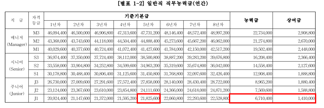 초봉은 높지만, 인상폭이 생각처럼 높지는 않은 구조인것 같다.