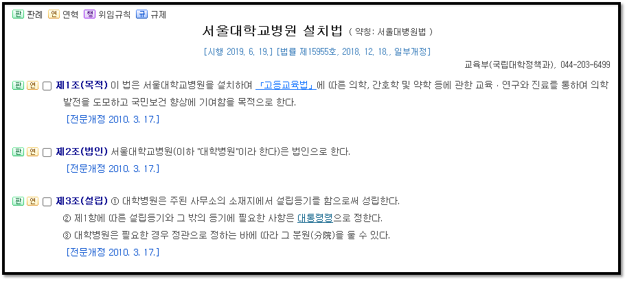 무려 서울대병원 설치를위한 법이 따로존재한다.